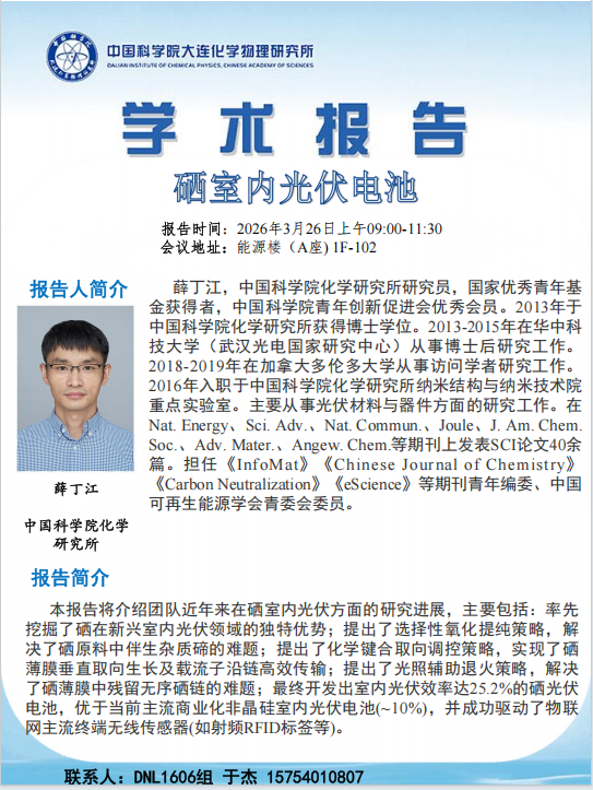 我组邀请薛丁江老师来访并做硒室内光伏电池相关报告